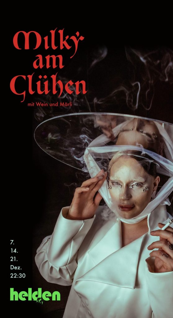 Unser Host Milky Diamond beglückt euch jeden Mittwoch im Dezember mit hausgemachtem Glühwein am Lagerfeuer auf der Terrasse. Nicht verpassen: jeweils um 22:30 Uhr gibt es dazu eine kleine queere Märlistunde mit netten und bösen Überraschungen. Von und mit: Milky Diamond und Dominic Hartmann.